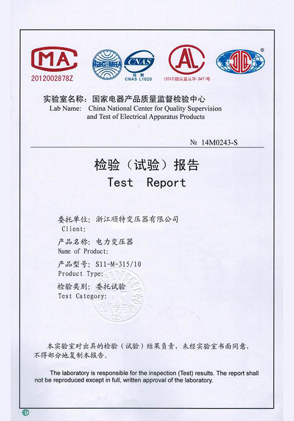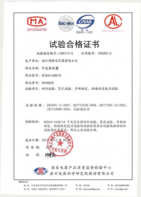 试验合格证书