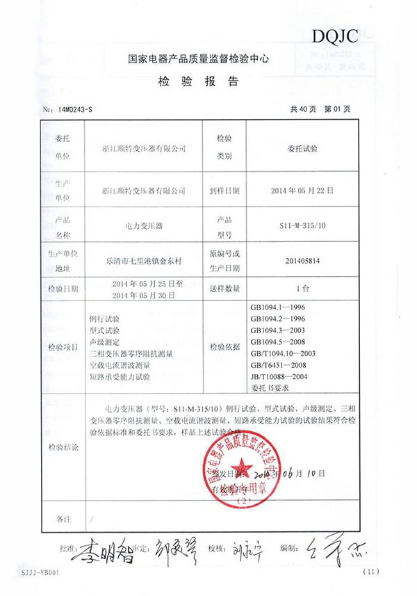 浙江顺特变压器有限公司是一家集科、工、贸为一体的企业,公司主要生产制造油浸电力变压器、矿用变压器、干式变压器、有载调压系列变压器、预装式变电站 SF6气体绝缘变压器及电炉、整流等特种变压器,容量已达到30-6300KVA,电压等及达35KV。