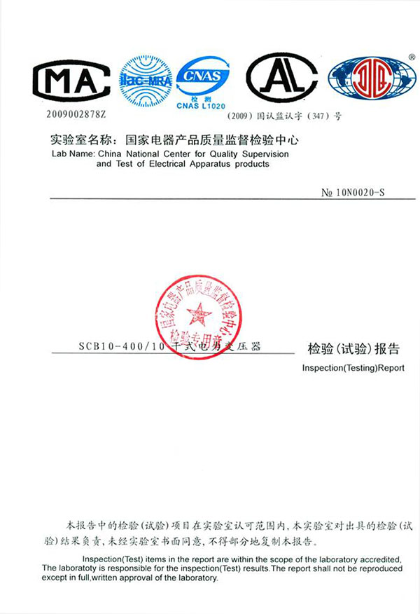 试验合格证书