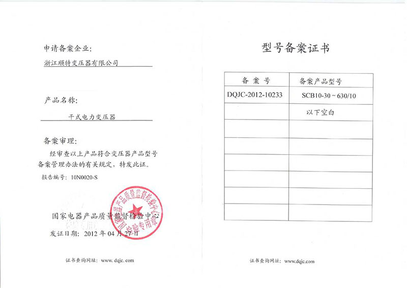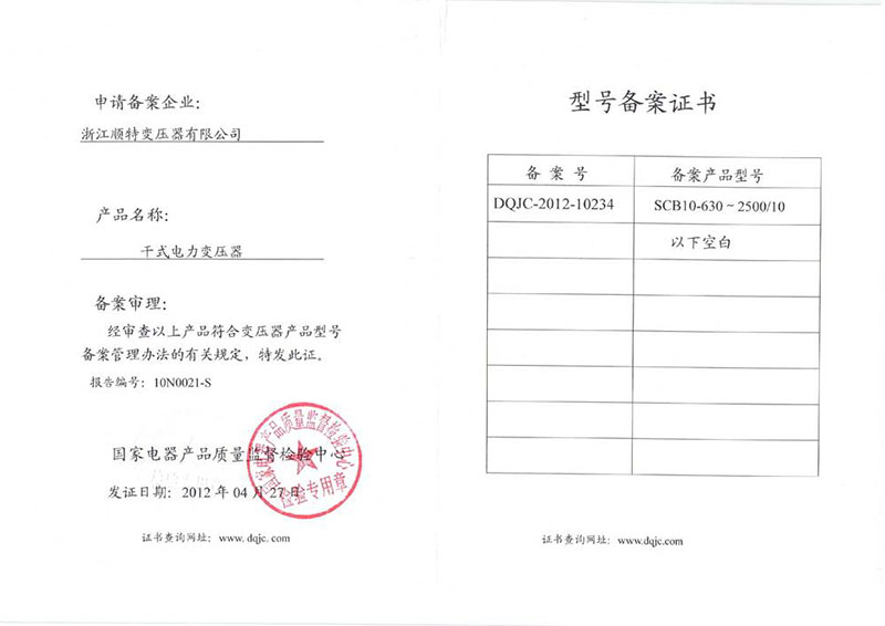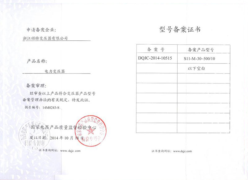 型号备案证书