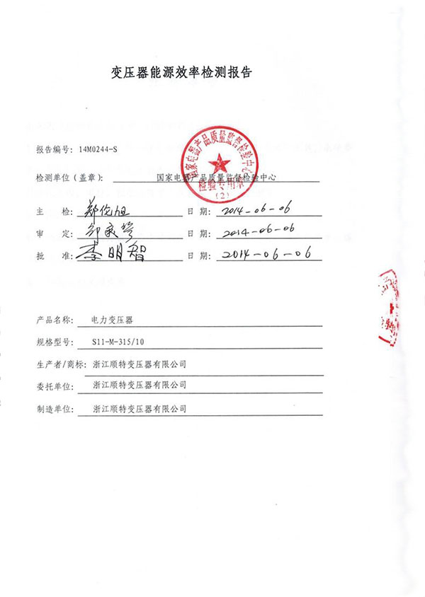 变压器能源效率检测报告